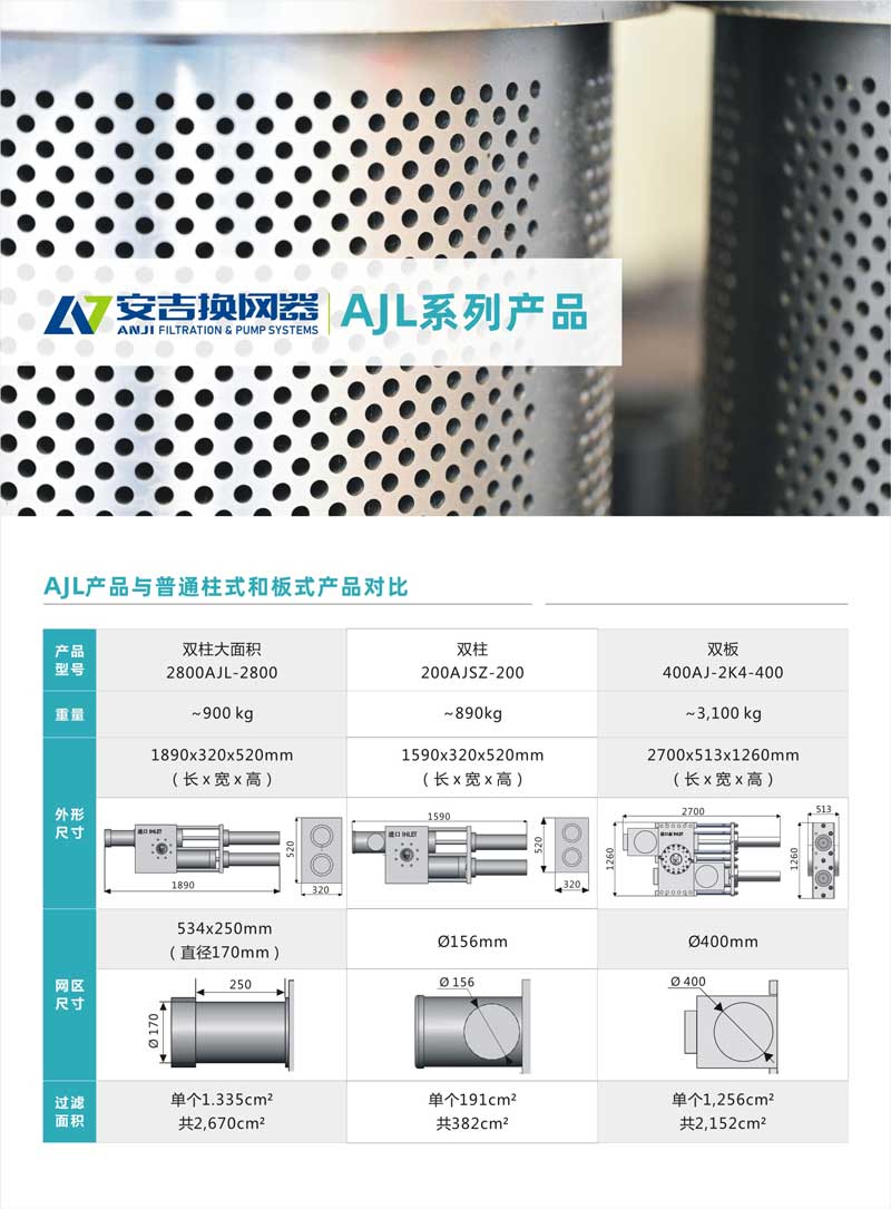 安吉提供過濾面積為150到20000平方雙柱大面積換網器產品。